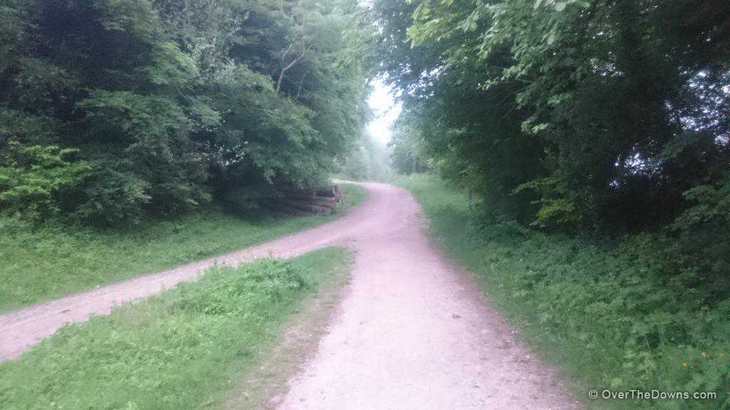 Beacon Hill leading into Harting starts with a climb then leads into Harting Down, which is a fast downhill chalky section which requires some care as can be slippery when wet. You will then have to go around to the right of the stone pile with post, this takes you around the hill. The hill is not cyclable and is not part of the SDW.