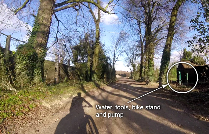 This new (as of autumn 2017) installation has water tap, bike repair stand with tools and a floor tyre pump.